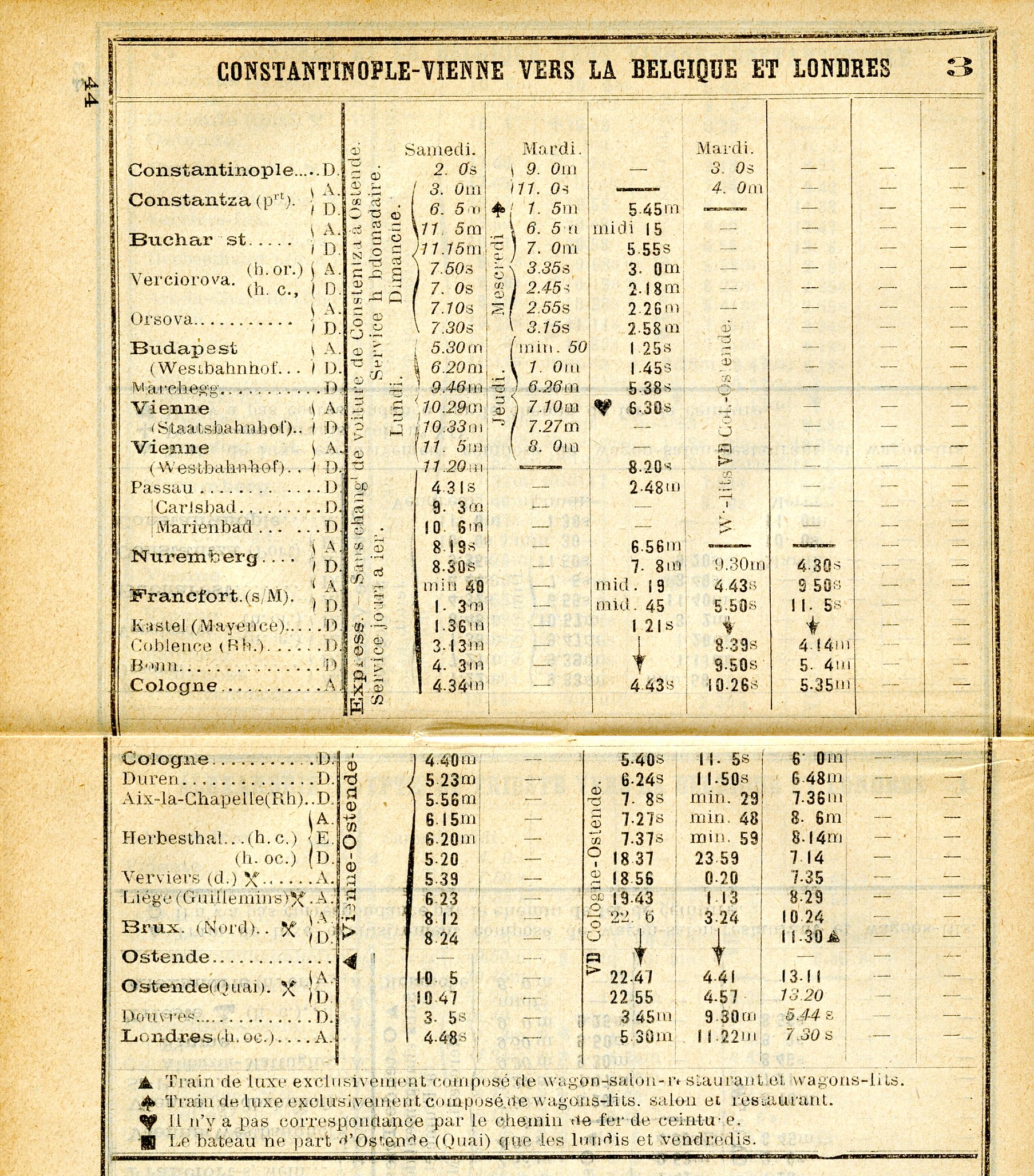 Ce que l’on peut supposer c’est qu’il aura quitté Jassy pour se rendre à Vienne (Moyen de locomotion inconnu car, il y a quand-même plus de 1.000 km entre les deux!…Bateaux à vapeur ou Malles-poste ?), où il savait qu’il y trouverait une correspondance, par voie chemin de fer, vers Bruxelles (Gare du Nord), quotidienne à cette époque (voir scans du « Guide horaire des Chemins de Fer Belges & Etrangers » du 3 janvier au 30 avril 1898)