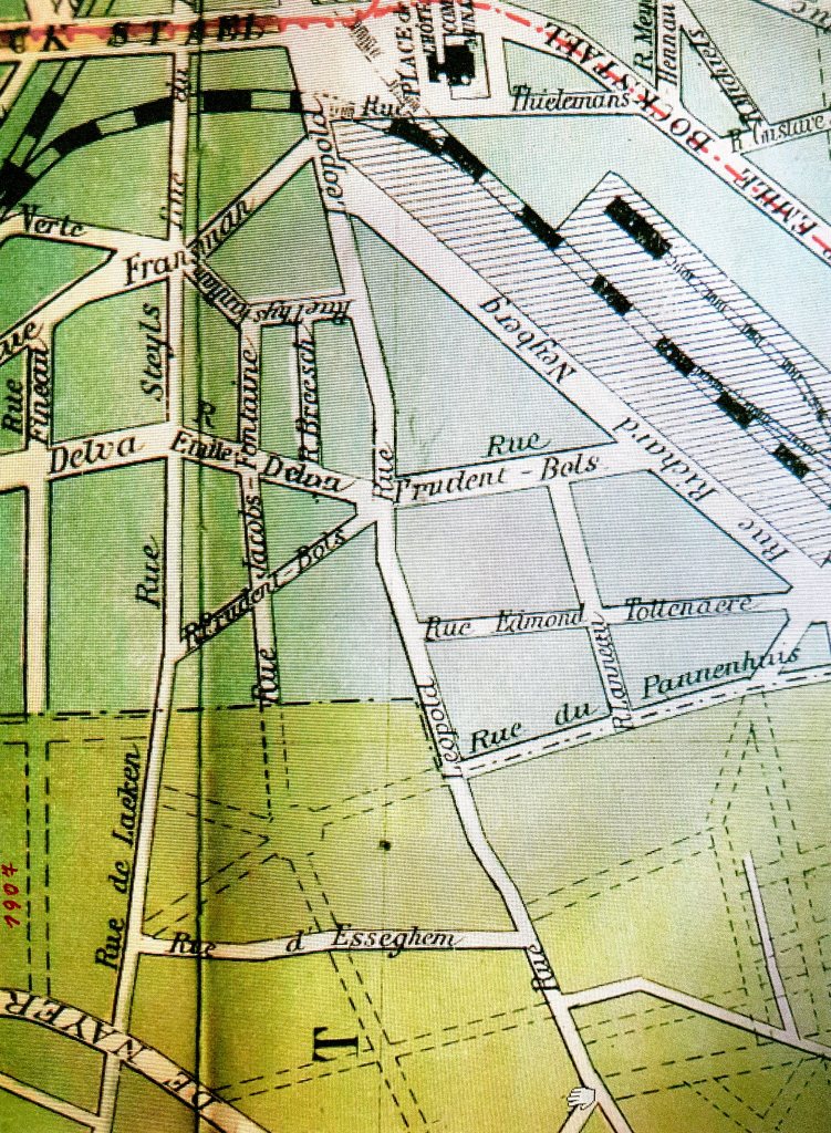 Me basant : 1) sur l’« Annuaire de la Magistrature et du Barreau, du Notariat, des Officiers Ministériels et de l’Enregistrement du Royaume » de 1904 et : 2) sur l’ « Annuaire Administratif de Belgique et de la Capitale du Royaume » de 1905, la rue Prudent Bols (partie qui va de la rue Steyls à la rue Léopold) doit avoir été créée en 1904.
