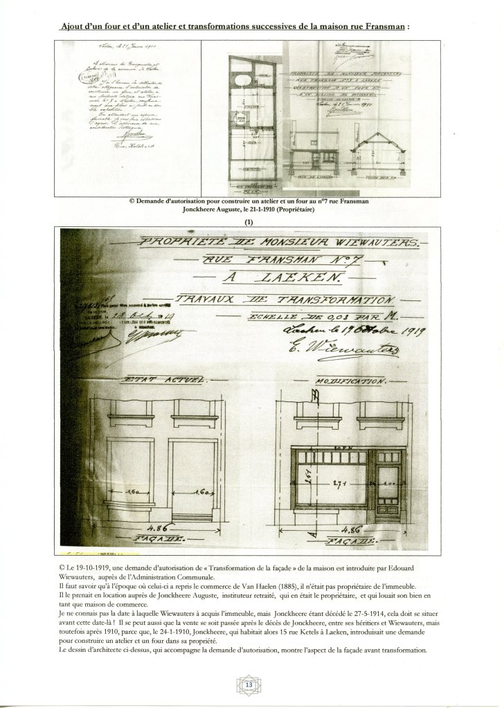 Après le décès d’Alfred, son épouse est partie pour le n°13 rue Thiefry à Schaerbeek .